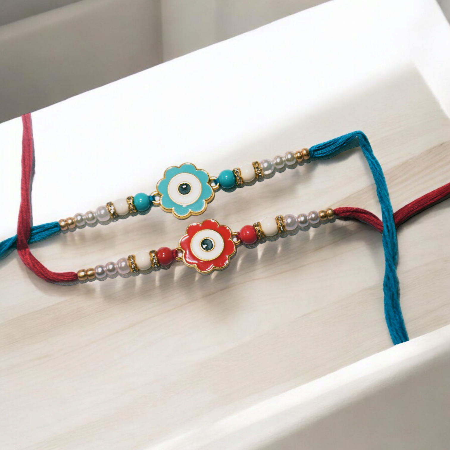 This year, on Raksha Bandhan, express your emotions and love with an exclusive Red and Blue Flowers Designer | 2 Set of Rakhi for brother.