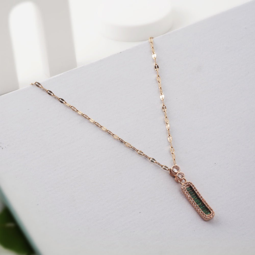 Introducing the Green color Drop Necklace – the perfect accessory for any occasion. With its stunning design, this necklace is sure to add a touch of glamour to your everyday wear and make you stand out at any party. Beautiful, alluring, and glorious, this chain pendant will elevate your style to the next level.