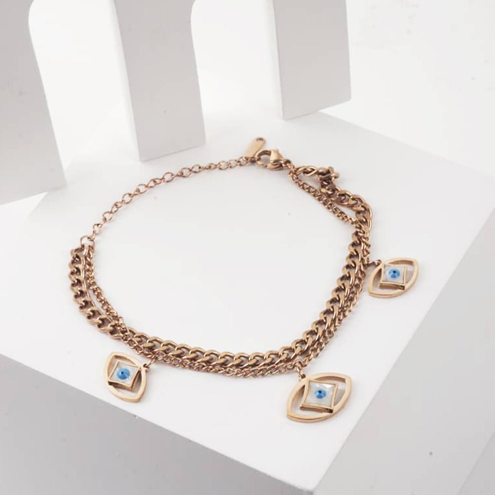 The classic evil eye bracelet is available in rose gold color. The beautiful design makes the stunning handcrafted jewelry bracelet ideal for daily use.